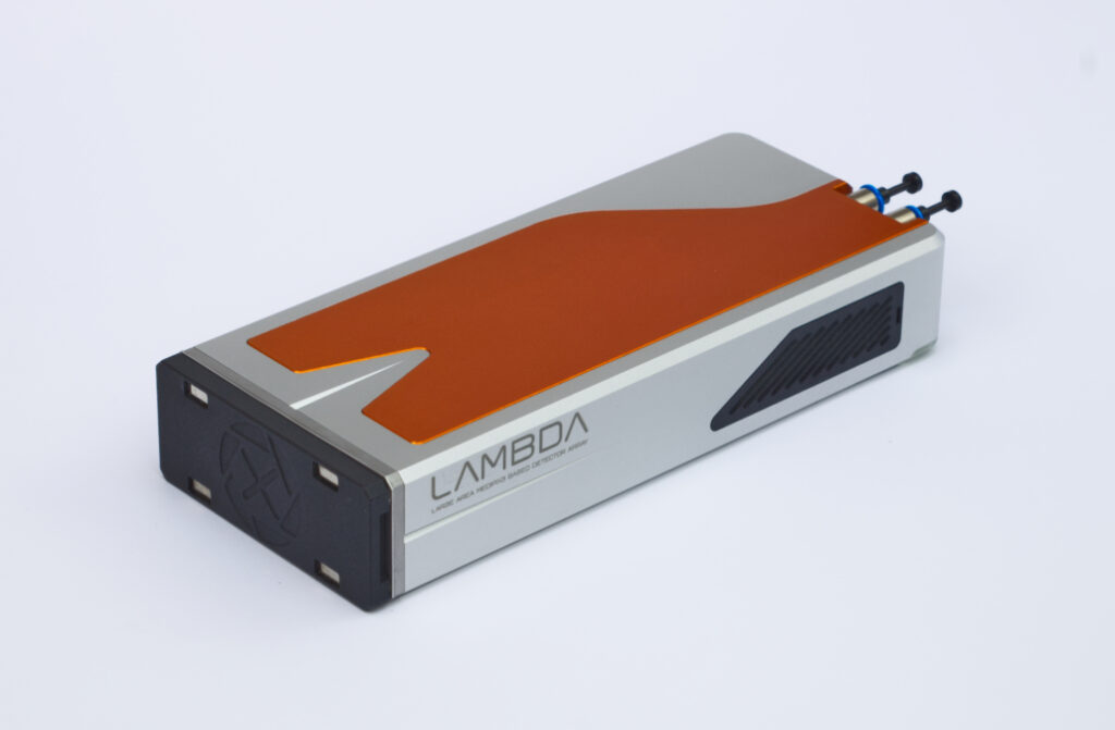 We offer a range of detector sizes, ranging from 256×256 pixels, up to 10 megapixels. The systems are designed to be compact and lightweight – for example, the LAMBDA 750k weighs only about 2 kg. For the standard LAMBDA systems, X-Spectrum designed even the largest area systems with highly parallelized readout, able to achieve the same high framing rates as the smaller systems. In-vacuum detector options are also available.